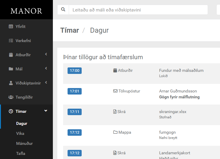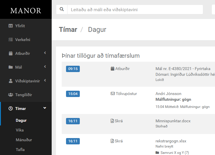 Manor finnur tímana þína í Outlook
