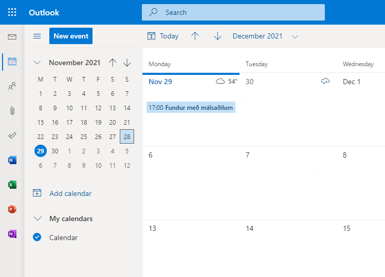 Þú stofnar atburð í outlook